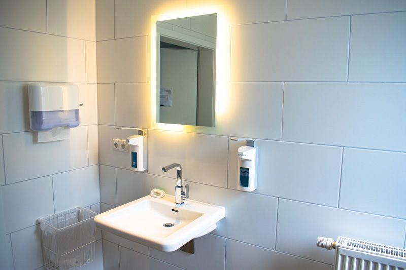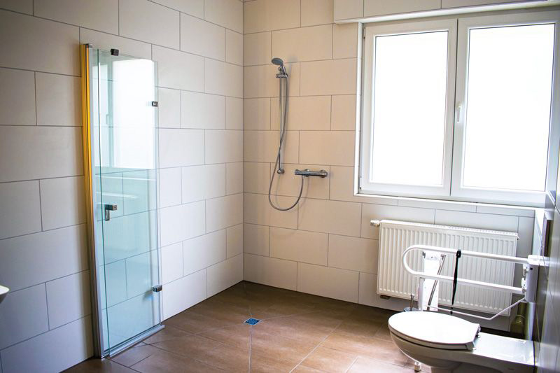 Rollstuhlgerechte Nasszelle mit Dusche und Toilette