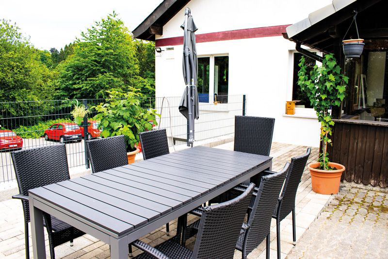 Eine großflächige Terrasse, die für unsere Tagesgäste eine Bewegungsmöglichkeit im Freien ermöglicht